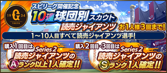 ◆10連球団別スカウト 読売ジャイアンツ読売ジャイアンツの選手だけが獲得できるお1人様3回限りの10連スカウトです。