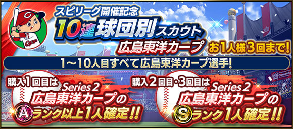 ◆10連球団別スカウト 広島東洋カープ広島東洋カープの選手だけが獲得できるお1人様3回限りの10連スカウトです。