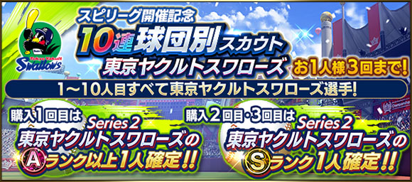 ◆10連球団別スカウト 東京ヤクルトスワローズ東京ヤクルトスワローズの選手だけが獲得できるお1人様3回限りの10連スカウトです。