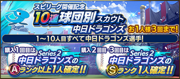 ◆10連球団別スカウト 中日ドラゴンズ中日ドラゴンズの選手だけが獲得できるお1人様3回限りの10連スカウトです。
